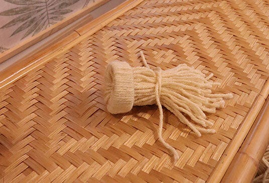8. Using a piece of yarn, tie a loop around the strands to form the shape of a hat. You can tie it once and then loop it around to tie a second time, pulling tight.
